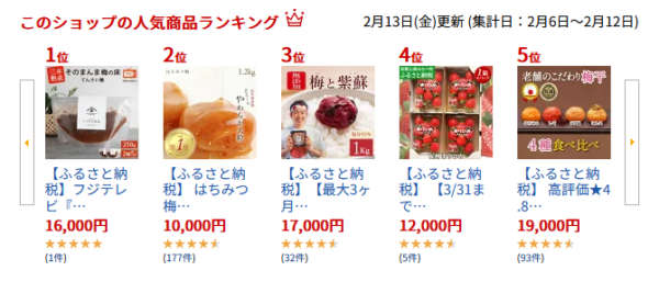 みなべ町の ふるさと納税 の ランキングが 1位になっております。