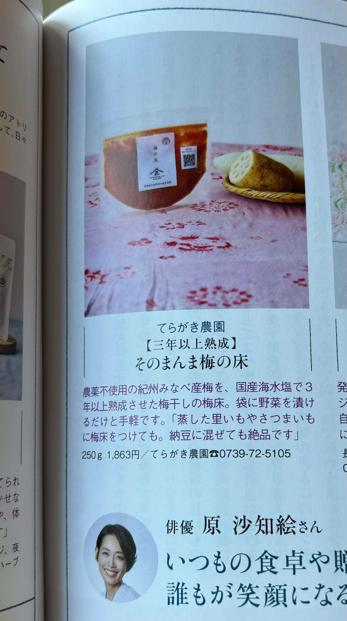 雑誌 天然生活 1月号に 俳優 原 沙知絵さんが梅の床を紹介してくださいました。
